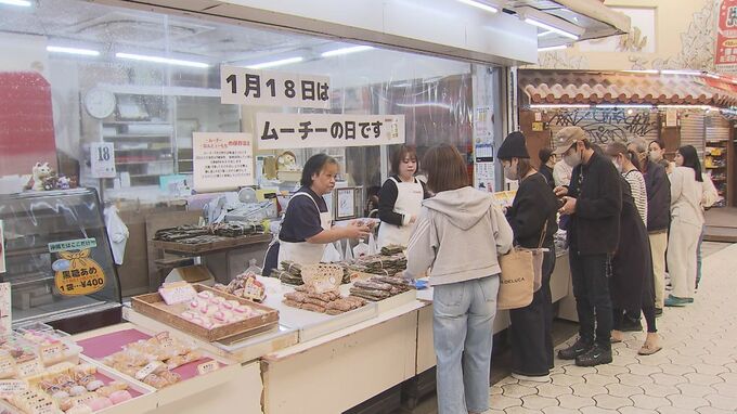 1月18日は旧暦の12月8日、ムーチーの日です。那覇市の菓子店では、朝から、ムーチーを買い求める人でにぎわっています。