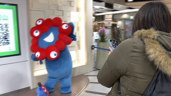 その先にいたのは…ミャクミャクです。きょうだけ来店するミャクミャクを一目見ようと訪れたこんなファンも…。