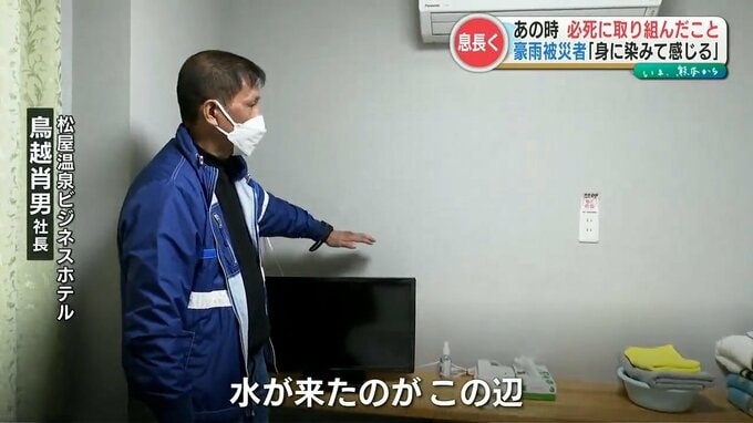 松屋温泉ビジネスホテル 鳥越肖男 社長「水が来たのがこの辺」「天井や壁、床、全て変えた」