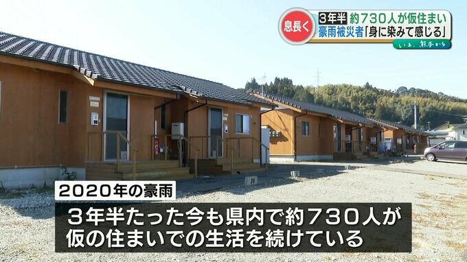 鳥越社長は被災者だったからこそ2次避難所の重要性を訴えます。一方で、長期化が懸念されるのが仮設住宅での生活です。2020年の豪雨では、発生から3年半たった今も県内で約730人が仮の住まいでの生活を続けています。