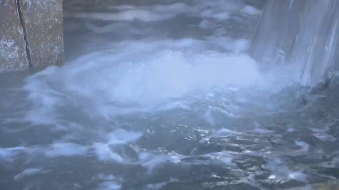 「復活した源泉は熱く、硫黄のような温泉の香りがする」