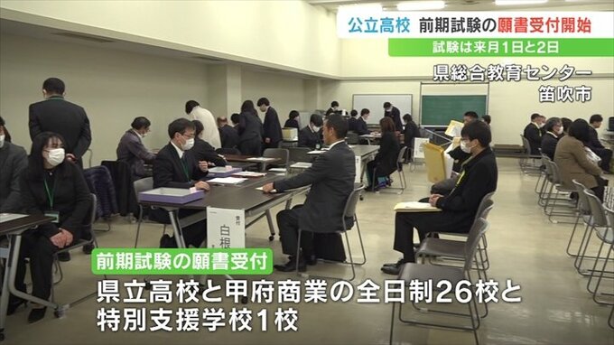 18日に願書の受付けが始まったのは、県立高校と甲府商業の全日制26校と特別支援学校1校です。