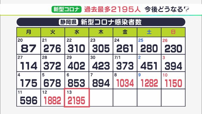7月13日、静岡県内では過去最多の2195人が新型コロナウイルスに感染したことが確認されました。県は12日、国の評価レベルを1から2へ引き上げたばかりで、警戒感が高まっています。2195人の感染者を自治体別にみま…