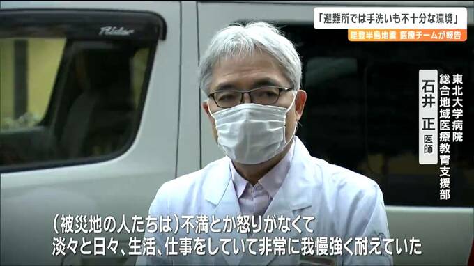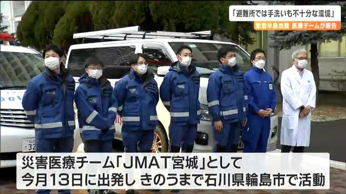 能登半島地震で被災した石川県の病院などを支援するため宮城県医師会の災害医療チーム、JMATの第一班として派遣された東北大学病院の医師らが18日、仙台に戻りました。活動にあたった医師は「避難所では手洗いも不十分な環境」と被災地の窮状を語りました。