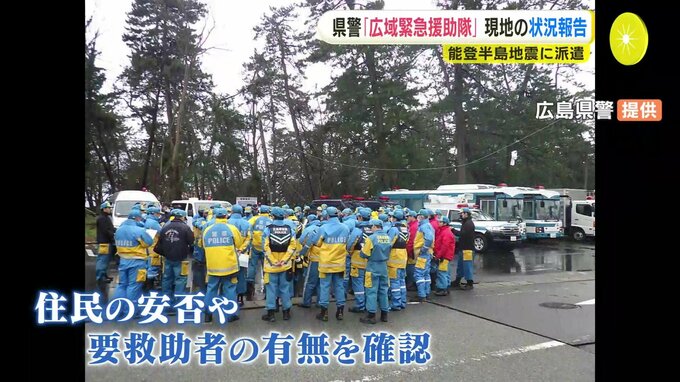 能登半島地震の被災地で救助活動などをした広島県警の機動隊員が18日、現地の状況を報告しました。県警本部の機動隊員など65人は災害に対応する「広域緊急援助隊」として5日から3日間、石川県珠洲市に派遣されました。