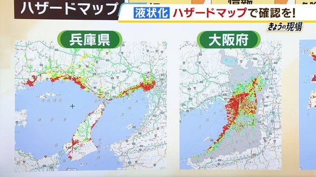 ――個人でできる対策としては、国土地理院が「重ねるハザードマップ」を公開しています。大阪などは広い範囲で赤(液状化のリスクが高い)となっています。ぜひお住まいの地域が液状化しやすいかどうか確認してください。(2024年1月16日放送 MBSテレビ「よんチャンTV」より)