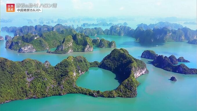 茘波のように雨水で浸食されて丸い円筒形の山々が生まれ、そののちに海水面の上昇によって山々が島々へと変わり、ハロン湾の景観が出来上がりました。