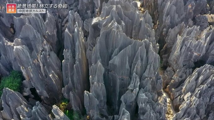中国南部カルストでは、雲南省の石林(せきりん)という所も撮影しました。名前の通り、塔のような奇岩が林立し、まるで剣山。