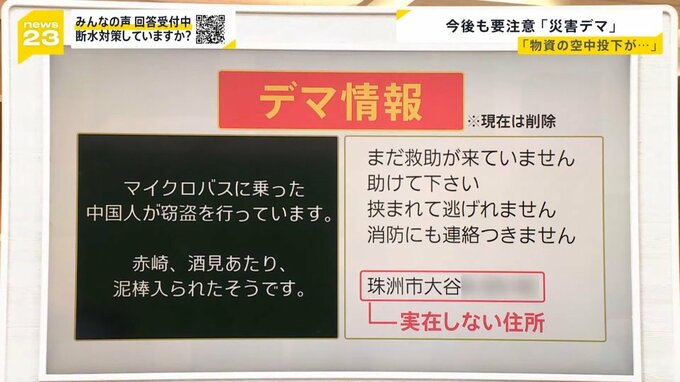 ▼そして今、支援が広がろうとしていますよね。このタイミングからは、たとえば「(政治家)が○○と発言。資質に欠けている」ですとか「物資の空中投下がなされるようだ」などの、災害の対応に関するデマが広がりやすくなるそうです。