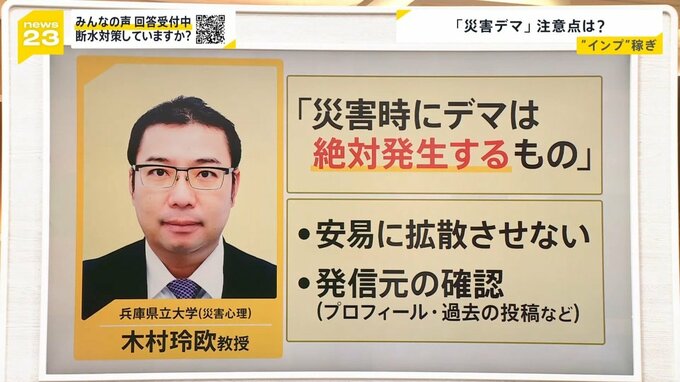 発災時に特に目立つのは、インフルエンサーとか有名な方が、もちろん善意でやっているんでしょうけれども、自分の持っている災害対策情報とか過去の経験を、すぐさまツイートされるというのが散見されます。