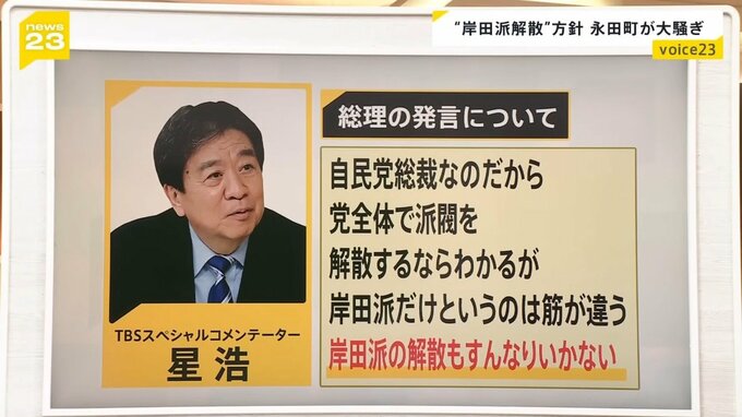 「自民党総裁なのだから、党全体で派閥を解散するならわかるが、岸田派だけというのは筋が違う。岸田派の解散もすんなりいかない。