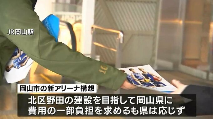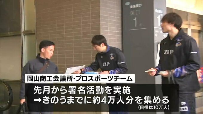 一方で計画の実現を後押ししようと岡山商工会議所や市内のプロスポーツチームは先月から署名活動を行っていて、きのうまでに約4万人分を集めています。