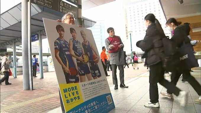 岡山市が整備を検討している新アリーナについて、実現を後押ししようとプロスポーツチームの選手らがJR岡山駅前で2回目となる署名活動を行いました。