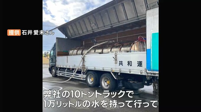 「弊社の10トントラックで1万リットルの水を持っていって、