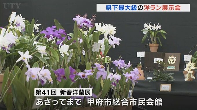 愛好家が育てた洋ランを集めた「新春洋蘭展」が甲府市で始まりました。
