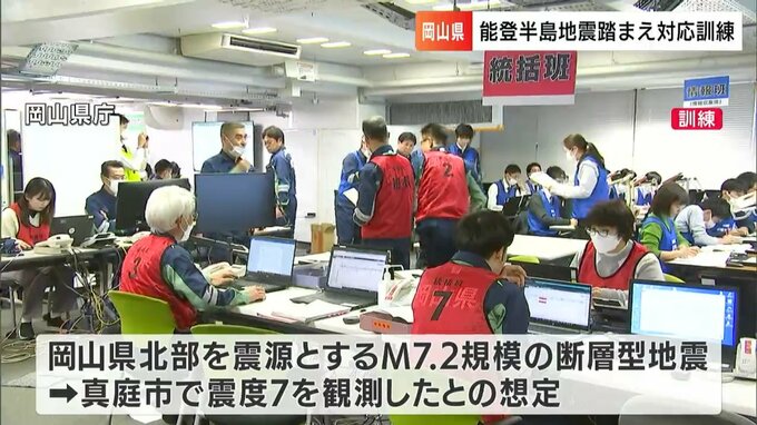 能登半島地震の発生からきょう(19日)で19日目です。岡山県は、能登半島と同じ断層型地震を想定した訓練を県内の市町村などと行いました。