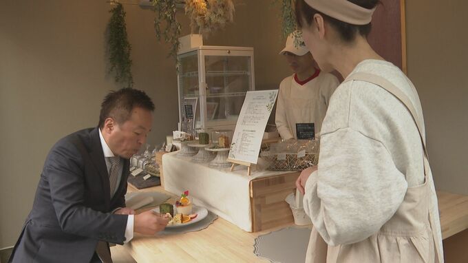 前田晋太郎市長も訪れて出店者を激励したほか、杉村さんの案内で店舗を視察し、一部の店で試食もしました。