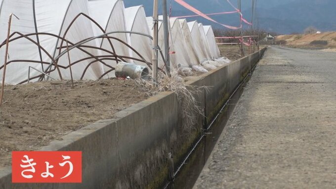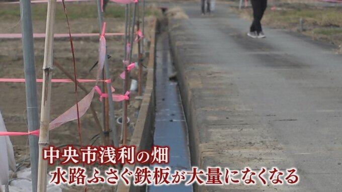19日朝、中央市浅利の畑で、イチゴ農家が水路をふさぐ鉄板が大量になくなっていることに気づきました。