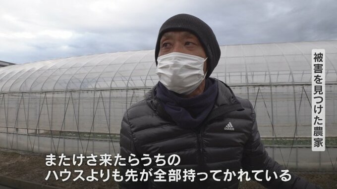 「またけさ来たらうちのハウスよりも先が全部持ってかれている。非常に悪質、許せないね。これはほんとうに」