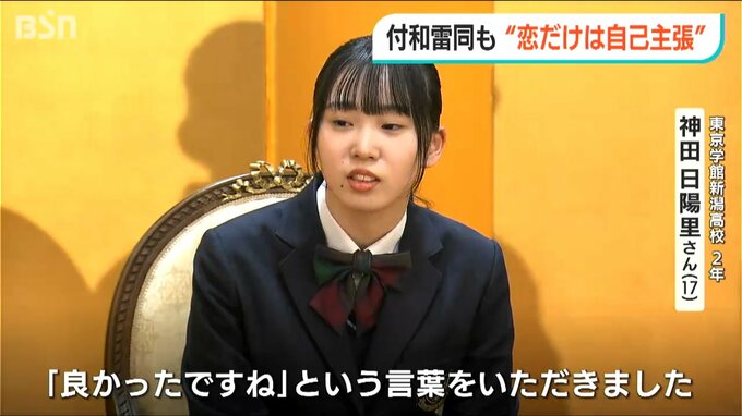 新潟県内からは東京学館新潟高校の2年生・神田日陽里さん(17)が出席しました。今回の入選者10人の中で最年少です。