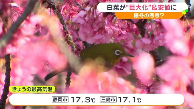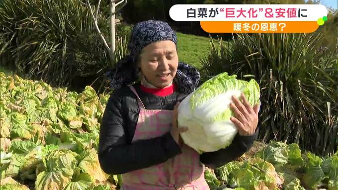 1月19日、静岡市では17.3℃を観測するなど、2024年は全国的な暖冬です。暖冬の影響は冬野菜にも及んでいて、この時期が最もおいしいと言われる白菜は巨大化し、値段も安くなっています。