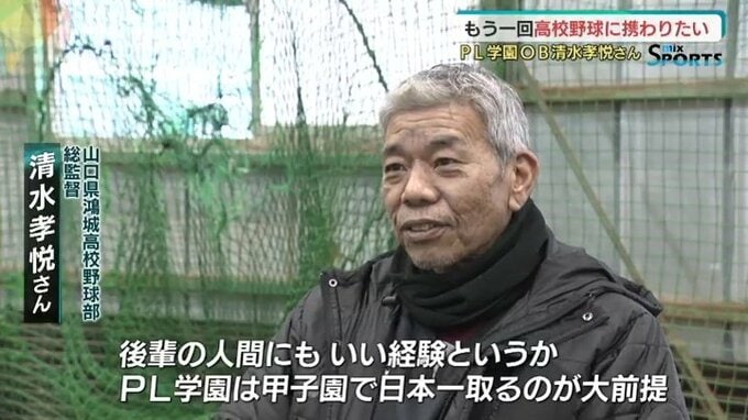 山口県鴻城高校野球部の総監督に新しく就任した清水孝悦さん。歴代3位甲子園春夏通算96勝を誇る高校野球の超名門PL学園高校出身。清水さんは1984年、キャプテンとして1学年下のKKコンビとともに春夏準優勝を果たしました。