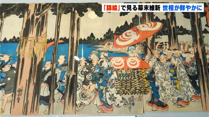 「錦絵」は、浮世絵から派生し、江戸時代中期~後期に描かれた、多色刷りの木版画です。20日に始まった企画展「錦絵にみる幕末維新-絵師と庶民の徳川幕府-」では、幕末に描かれた風刺画など32点が展示されています。
