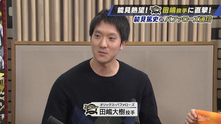 能見:僕がオリックスに移籍したときに、キャンプで声をかけてくれたりとかしたので、どんな性格なんだろうなって思ってて。いろんな選手いる中で、タジ(田嶋投手)だけ、いつも1人でいるんですよ。それでちょっと気になっていました。