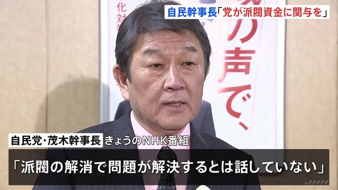 自民党の茂木幹事長はきょう、NHKの番組で、政治資金パーティーをめぐる裏金事件を受け「派閥の解消で問題が解決するわけではない」とした上で、党が派閥の資金についても関与する仕組みを作る考えを示しました。…