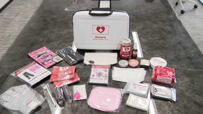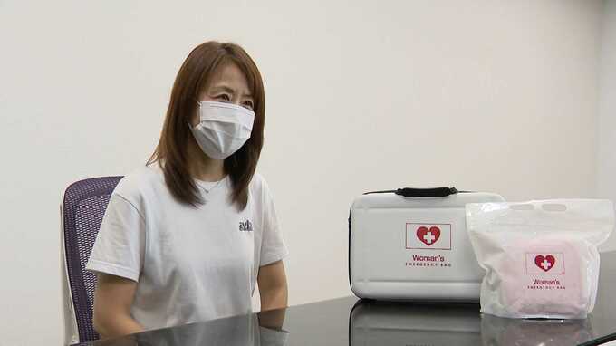 自治体だけでなく、民間の取り組みも徐々に広がっています。ホテルの元支配人で防災士の資格を持つ女性が開発した「女性専用の防災バッグ」です。紙ショーツや携帯トイレ、着替えの際には目隠しにもなる大きめのレインコートなどが入っています。
