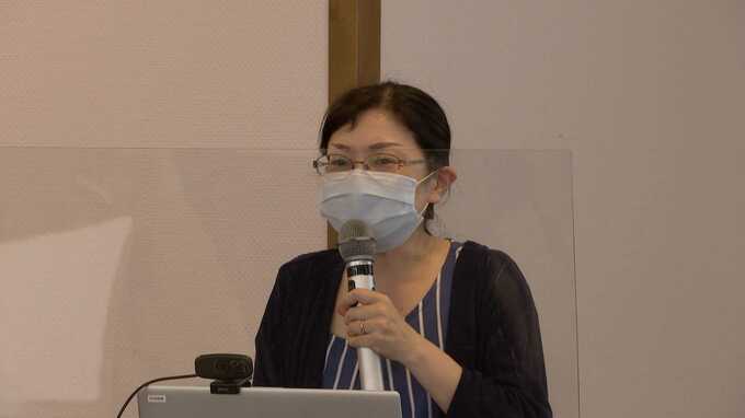 講師 浅野幸子さん「現実に、家庭で衛生・栄養・育児・介護などの視点から家族ケアしているのは女性が多い。男女一緒に防災に取り組むことが大事かなと思っています」