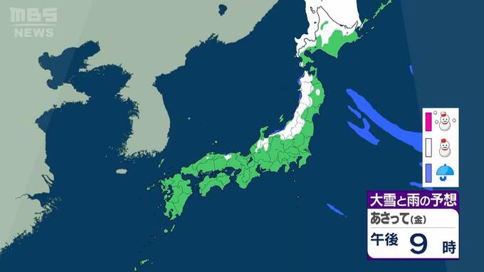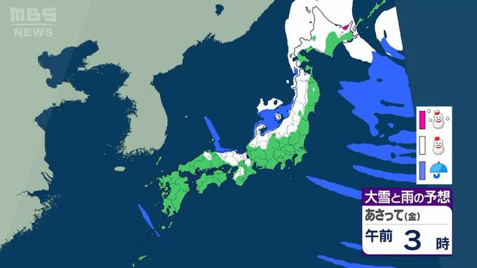 【大雪情報】「この冬1番の寒気」上空にマイナス40℃の強い寒気 警報級大雪の可能性 25日にかけ近畿、北陸など日本海側で大雪見込み 毎日放送 2024年1月24日(水) 20:45 国内 天気 【26日(金)3時間ごとの雪と雨シミュレーション】