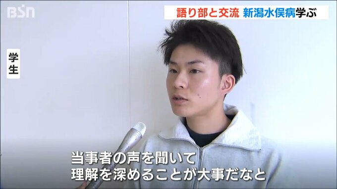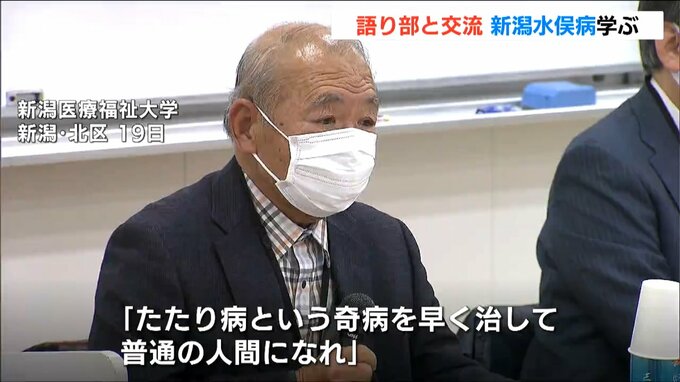 新潟医療福祉大学の学生が19日、新潟水俣病の語り部と交流し、水俣病の歴史を正しく理解し後世に語り継いでいく大切さを学びました。