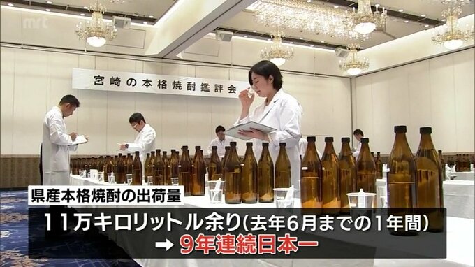 宮崎県内焼酎メーカーの醸造技術の向上を図ろうと本格焼酎の鑑評会が宮崎市で開かれました。鑑評会は、県酒造組合が開いたもので、県内の21社が去年1月以降に製造した本格焼酎107点が出品されました。会場では、熊…