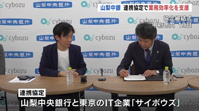 山梨中央銀行と協定を結んだのは東京都内で業務の効率化に関するITツールの開発などを手掛けるサイボウズです。