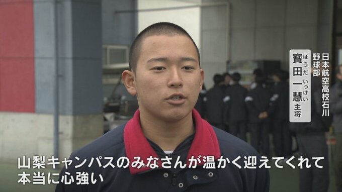 山梨キャンパスのみなさんが温かく迎えてくれて本当に心強い。野球ができていることに感謝して、恩返しができるよう頑張りたい。