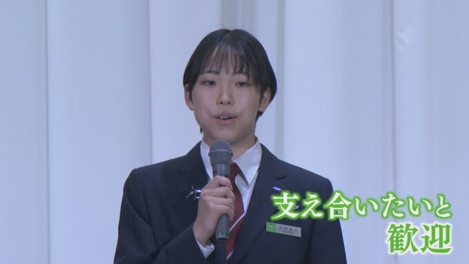 式では石川の生徒が感謝の気持ちや大会に向けた決意を語り、甲斐市の生徒がともに支え合いたいと歓迎しました。