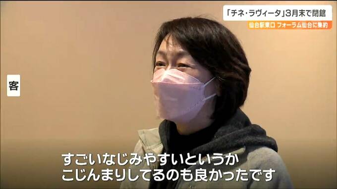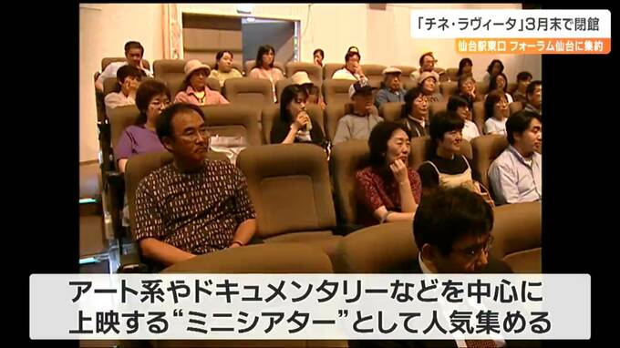 20年近くにわたり映画ファンに親しまれてきたJR仙台駅東口の映画館「チネ・ラヴィータ」が3月末で閉館することになりました。今後は系列の「フォーラム仙台」に営業を集約するとしています。