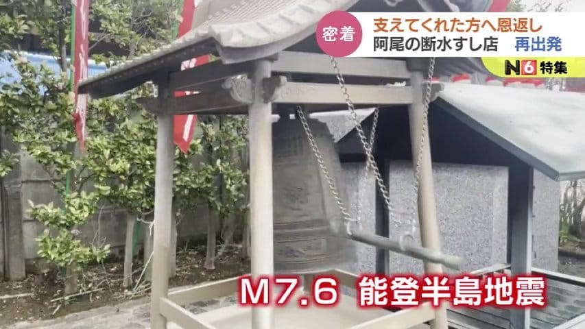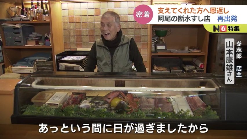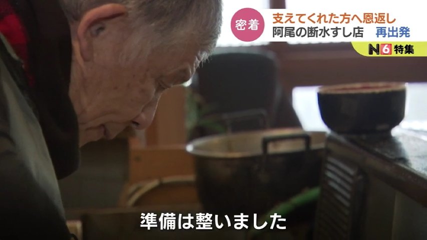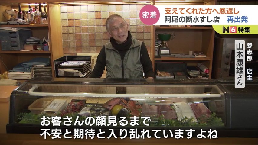 富山県氷見市阿尾のすし店。断水の影響で店舗で営業ができなくなっても落ち込んだ表情を見せることなく、お客さんの元気な姿が早く見たいと立ち上がり先週末ついに営業を再開しました。その苦難の道のりに密着しました。