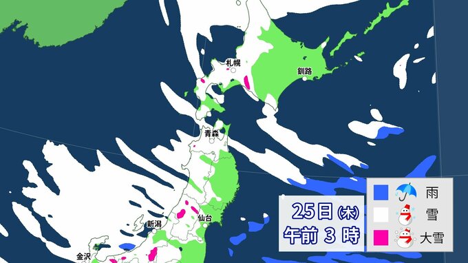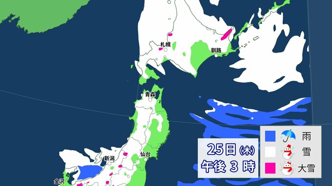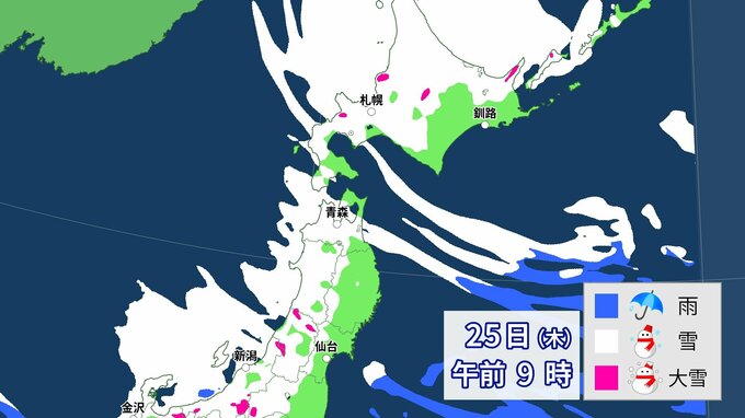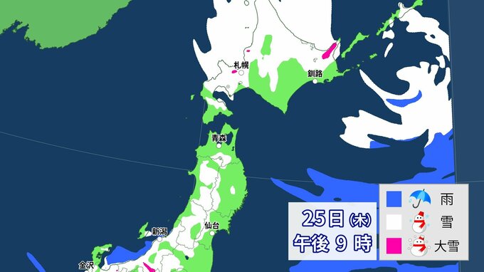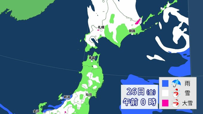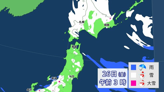 【大雪情報】上空にこの冬一番の強力寒気 全国に「大雪に関する情報」発表 各地の雪の降り方は 26日まで1時間ごと降雪予想 中国放送 2024年1月23日(火) 06:42 国内 天気 北日本 25日(木)~26日(金)雪の降り方は