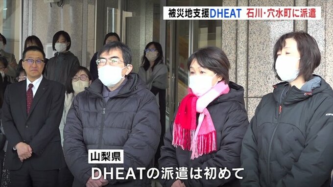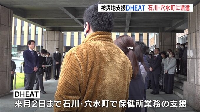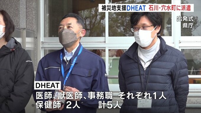 被災地の保健所業務などを支援するDHEAT(ディーヒート)が県として初めて石川県穴水町に向けて出発しました。