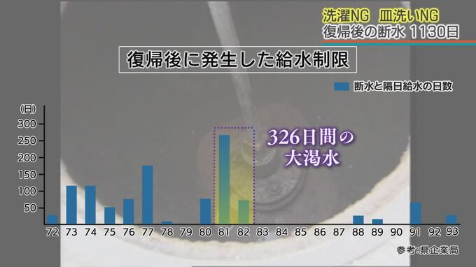 復帰後は1130日の断水を経験。なかでも1981年から82年にかけて326日間続いた給水制限は、いまでも日本最長となっています。