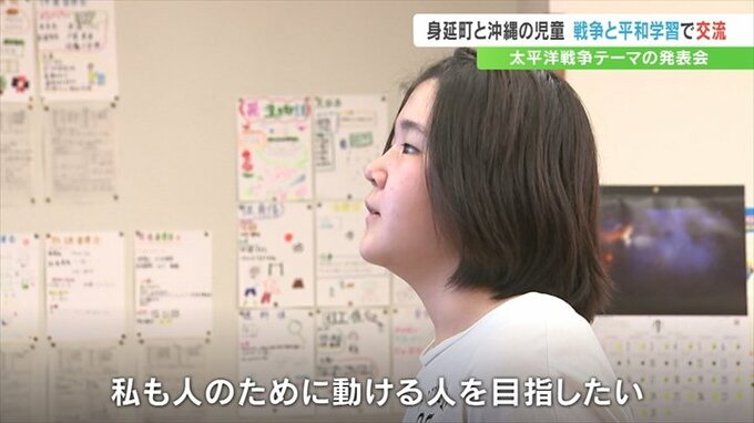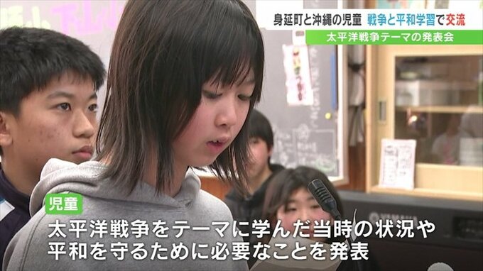 児童たちが発表したのは、太平洋戦争をテーマに学習した戦争と平和です。