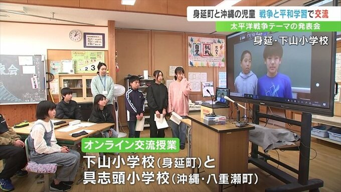 オンラインで交流する授業を行ったのは、身延町の下山小学校と沖縄県八重瀬町にある具志頭小の6年生です。