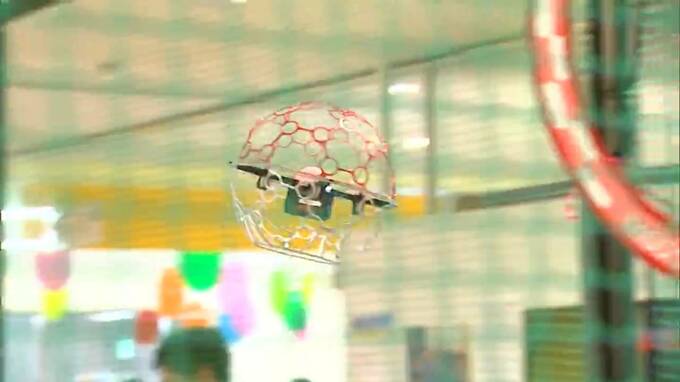 球状のフレームに覆われたドローンが対戦するユニークなサッカー。ドローンサッカーの大会が香川県で初めて開かれました。球状のフレームに覆われたドローンを相手ゴールに入れて得点を競うドローンサッカー。韓国…