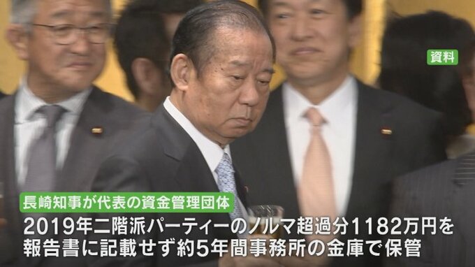 この問題は二階派の政治資金パーティー券の販売ノルマを超えた分にあたる1182万円の現金を、長崎知事が代表を務める資金管理団体が報告書に記載せず、およそ5年間、事務所の金庫で保管していたものです。