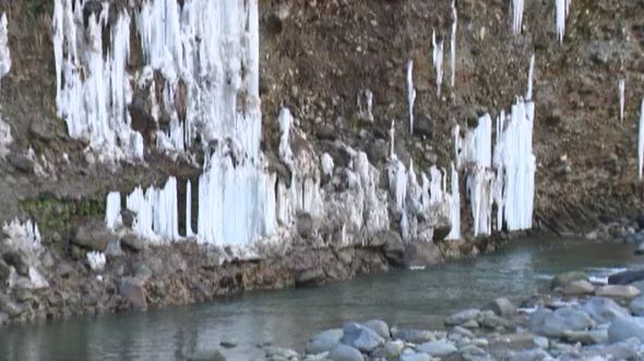 この冬は『暖冬』と言われていますが、冬の観光名所にも影響が出ています。長野県木曽町三岳(きそまち・みたけ)の白川氷柱群(しらかわひょうちゅうぐん)。岩肌からしみ出た地下水が、凍ったり解けたりを繰り返…