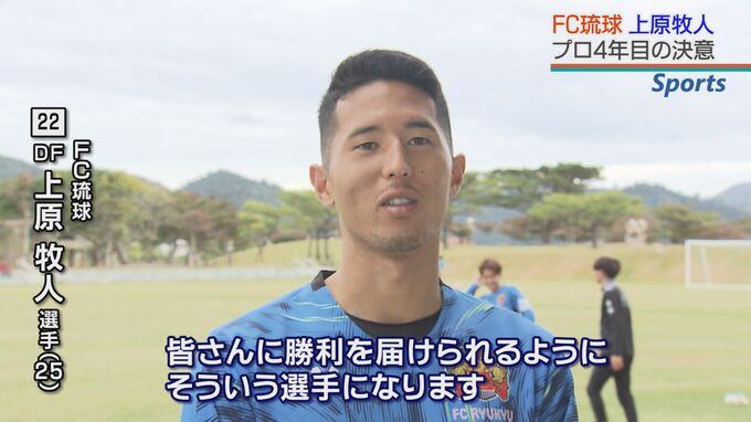 「地元にあるJクラブのチーム、FC琉球で活躍したい思いが強いのと、家族やお父さんお母さんにここまでサポートしてもらったので、プレーや結果で恩返ししたい思いが強い」