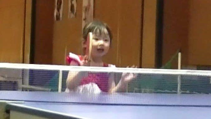 ラケットを握ったのは2歳。両親、そして兄・智和(ともかず)選手に囲まれ、卓球一家で育った。3歳の時には卓球はもうお手のものだったようだ。