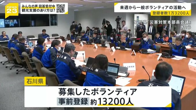 石川県が募集したボランティアの事前登録者数は約1万3200人にのぼっていましたが、石川県はようやく23日、七尾市などでの活動の開始時期を「27日」と発表しました。